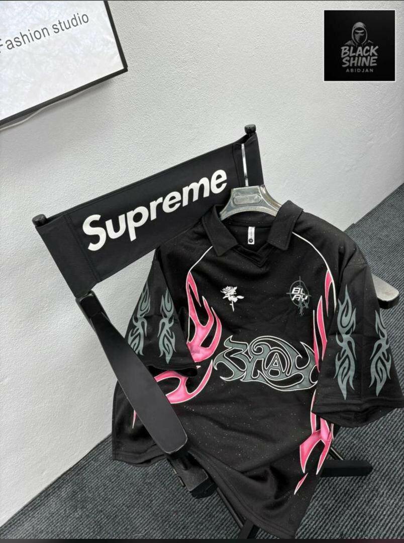 Découvrez ce maillot noir avec motifs de flammes roses, idéal pour une tenue décontractée et stylée. Parfait pour les amateurs de mode urbaine, ce maillot numéro 10 ajoutera une touche unique à votre garde-robe. Portez-le pour un look audacieux et tendance.