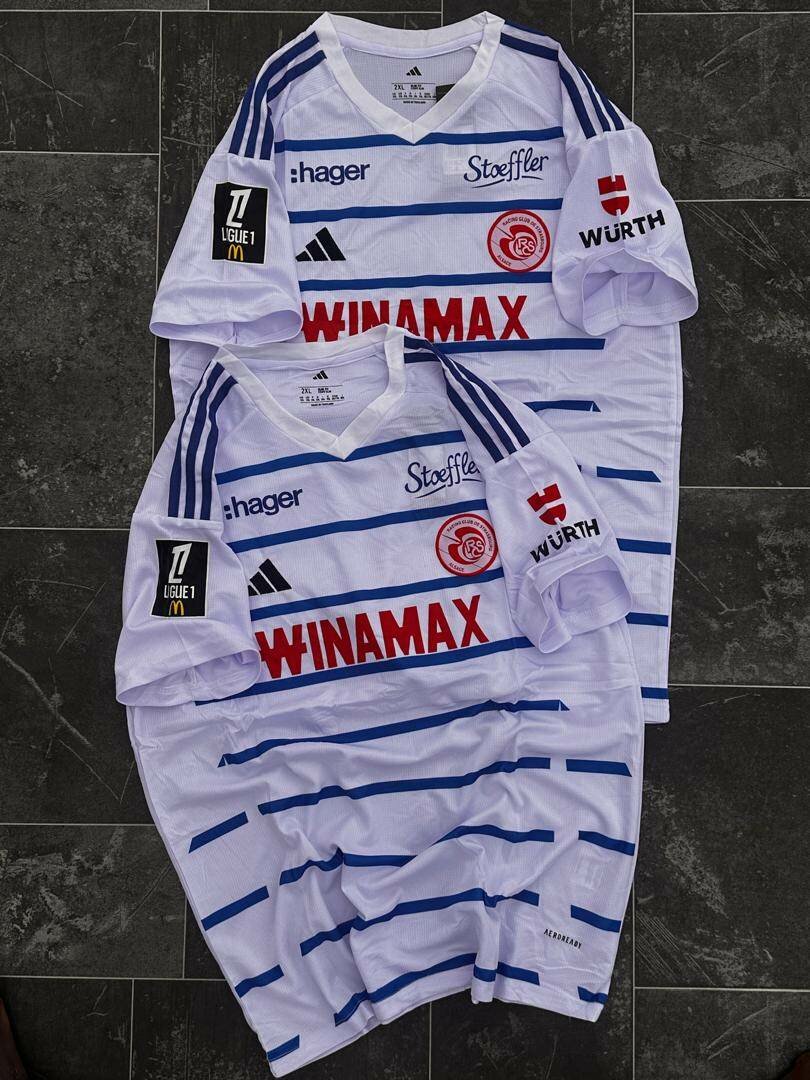 Maillot de football élégant et moderne avec rayures bleues sur fond blanc. Parfait pour les fans et joueurs passionnés. Confortable et respirant, ce maillot est idéal pour les matchs ou le quotidien. Soutenez votre équipe avec style et fierté. Version supporter