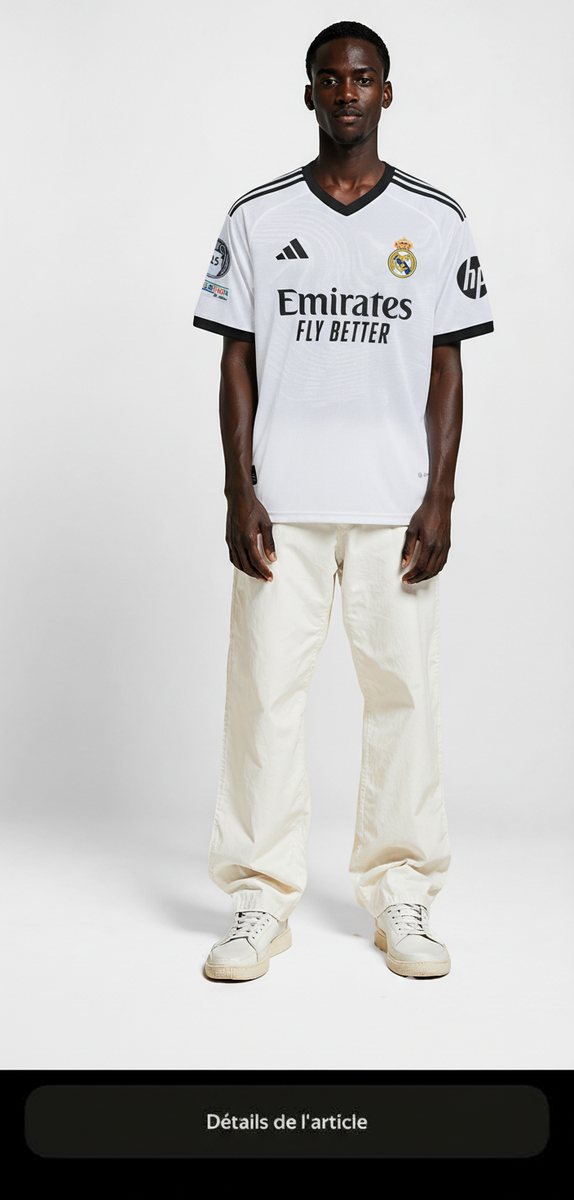 Maillot de football Real Madrid pour tous, idéal pour les jeunes fans. Confortable et respirant, parfait pour le sport ou les activités en plein air. Arbore fièrement le logo du club.