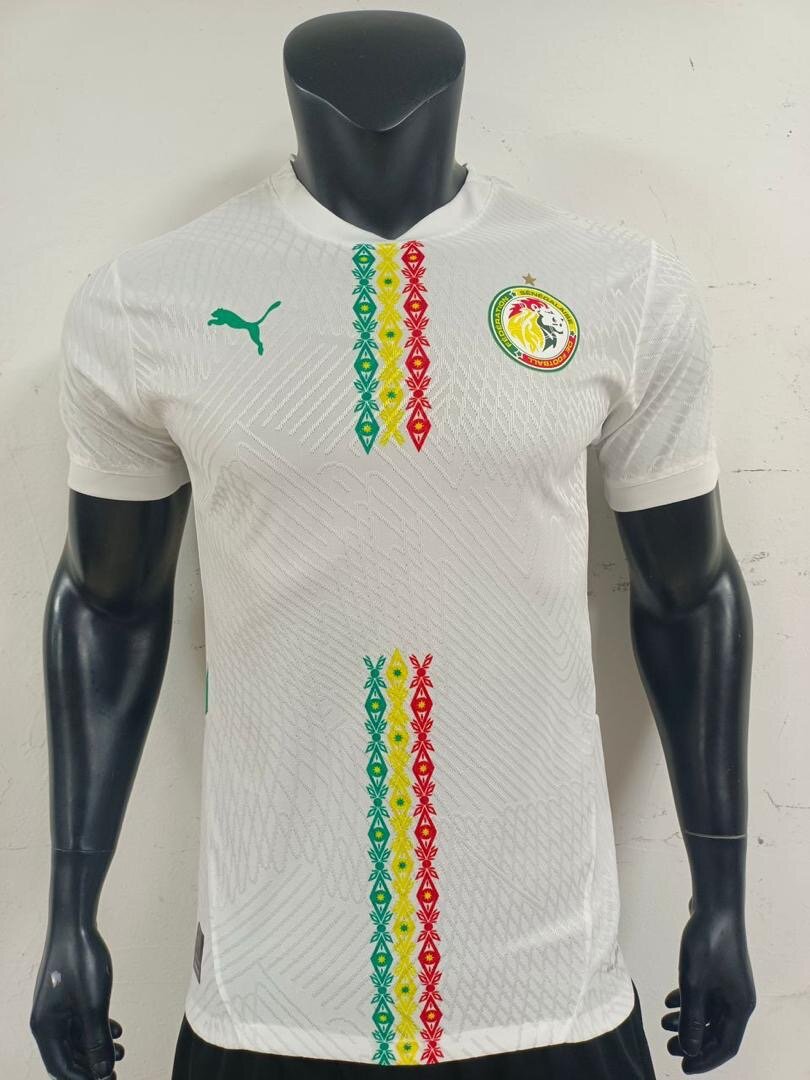 Maillot de football officiel du Sénégal par Puma. Tissu respirant avec motif distinctif. Parfait pour les supporters et les matchs.