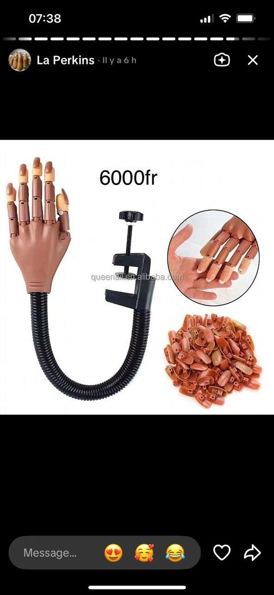 Cette main de pratique est idéale pour les étudiants en manucure. Facile à fixer avec son support ajustable, elle permet de perfectionner les techniques de pose d'ongles avec des faux ongles inclus. Un outil essentiel pour un entraînement efficace!