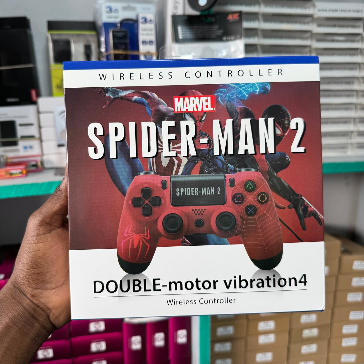 Découvrez une expérience de jeu immersive avec la manette sans fil Spider-Man 2. Dotée de vibrations à double moteur, elle vous plonge au cœur de l'action. Idéale pour les fans de super-héros et les amateurs de jeux vidéo, elle est compatible avec la majorité des consoles. Un choix parfait pour enrichir vos sessions de jeu.