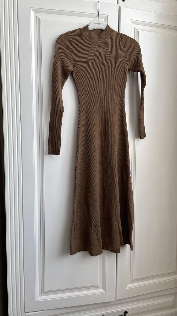 78% полиэстер, 22% полиамид Сезон: Зимний Размер: XS Длина: Миди С длинными рукавами Стиль: Повседневный (casual) Цвет: Коричневый Фасон платья: Платья-гольф