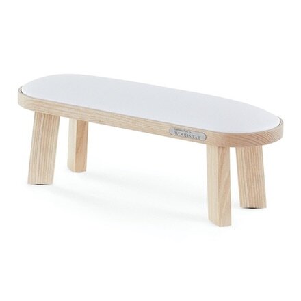 Подставка для маникюра Woodstar: прочное деревянное основание и мягкая подушка из белой эко-кожи для комфорта клиентов. В наличии 3 штуки