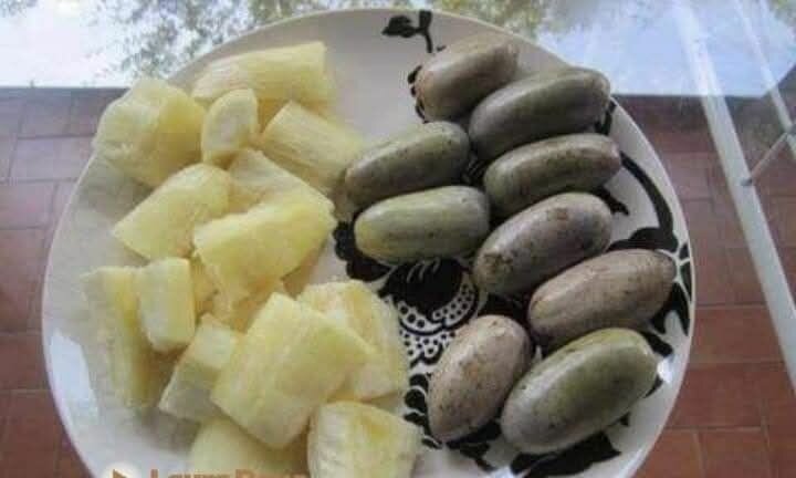 Découvrez la délicieuse saveur tropicale des safous ou prunes avec pour complément les tubercules de manioc.vraiment alléchant et très riches