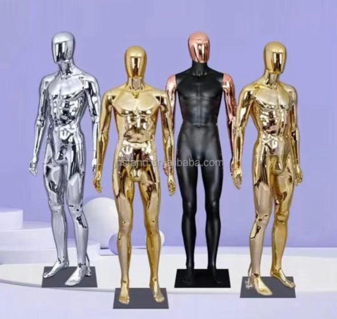 Transformez votre vitrine avec ces mannequins modernes en métal brillant. Parfait pour les boutiques de mode qui souhaitent attirer l'attention.