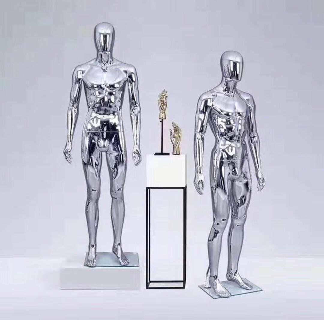 Mannequin en alliage métallique, parfait pour boutiques haut de gamme. Disponible en or, argent et noir brillant. Idéal pour mettre en valeur les vêtements de luxe avec une allure moderne et sophistiquée.