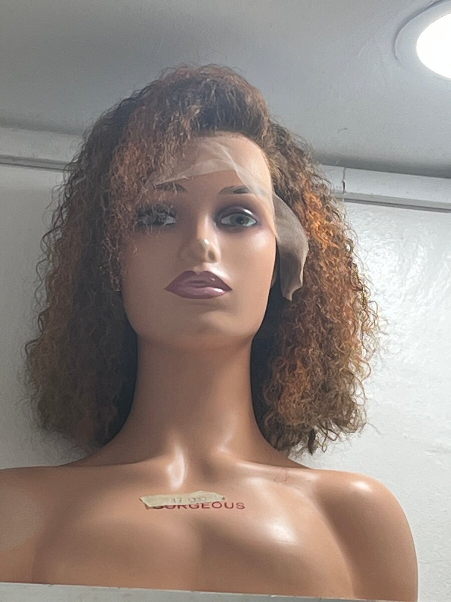 Transformez votre vitrine avec notre tête de mannequin réaliste, équipée d'une perruque bouclée brun clair. Idéale pour présenter des accessoires de coiffure ou des produits de beauté. Fabriquée en matériaux durables pour un usage prolongé en magasin ou studio.
