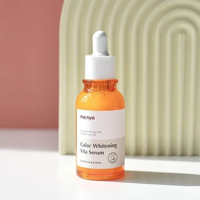 Мультивитаминная сыворотка для тусклой кожи Manyo Galac Whitening Vita Serum способствует осветлению пигментации и постакне, выравнивает тон, возвращает здоровое сияние и тонус. Устраняет тусклость, оказывает мощное антиоксидантное действие, замедляет процесс старения. Содержит воду облепихи, стабильный витамин C, галактомисис, церамиды, ниацинамид, пантенол и ещё 10 витаминов.
