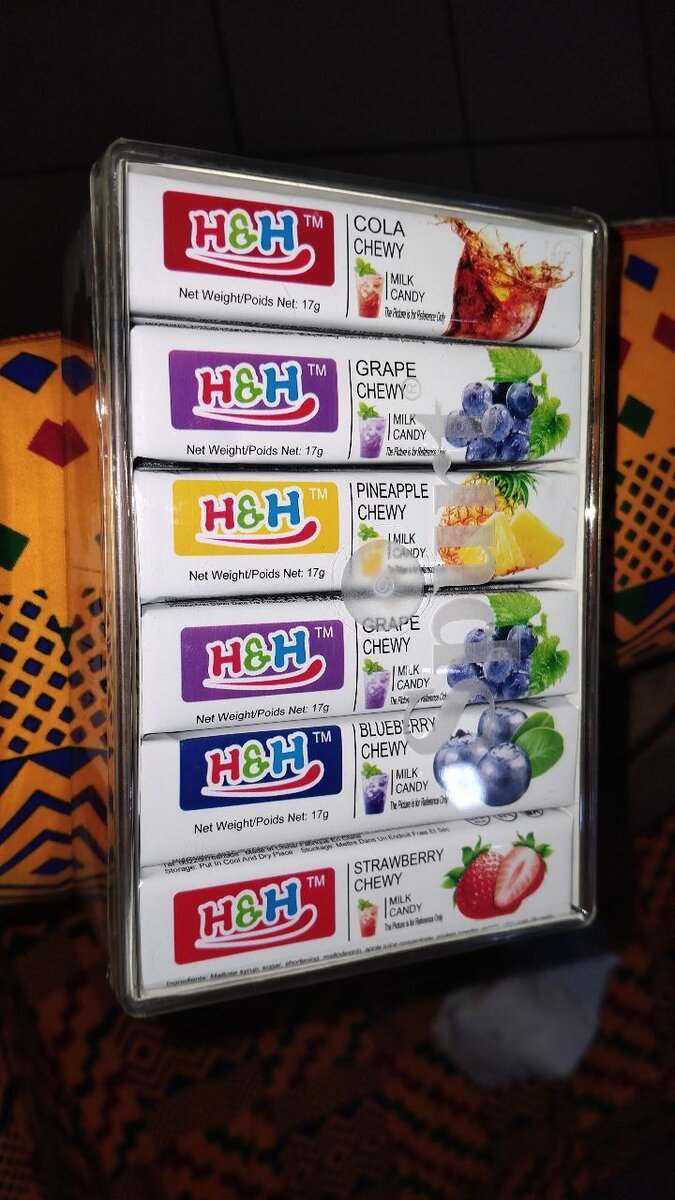 Des bonbons comme des mashmalo mais sans du sucre sur le bonbon, il est moins sucré 100f la barre , 3000f la boite de 30 barres de bonbons