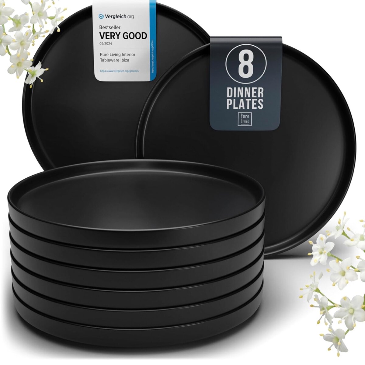 Matte black ceramic plate 2pcs