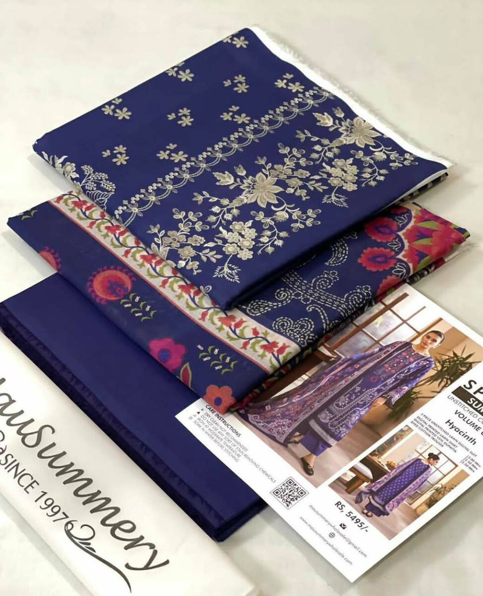 Mausummery Summer vol-1 2025 ( NEW LAUNCHING ) 100% Original Stock *DIGITAL PRINTED LAWN SHIRT* *DIGITAL PRINTED VOiL LAWN DUPPATA* * LAWN TROUSER* *With Bag & Inlay Card*