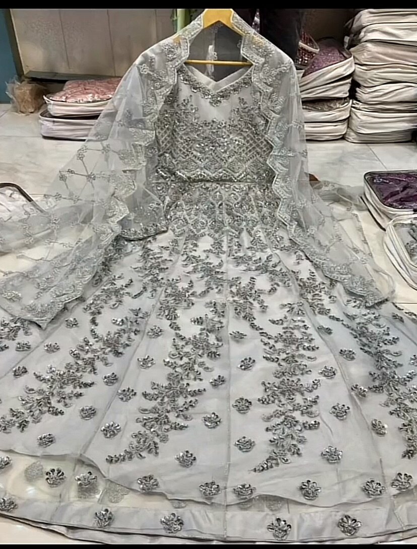 Net frok and satin silk trouser unsatich 3 pc