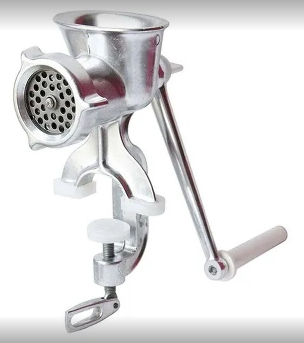 Мясорубка механическая (ручная) Мясорубка бытовая с ручным приводом предназначена для приготовления мясного и рыбного фарша. Мясорубка - выполнена из экологически чистого, прочного алюминия, благодаря этому уменьшен её вес. Мясорубка произведена по ГОСТу 4025-95.