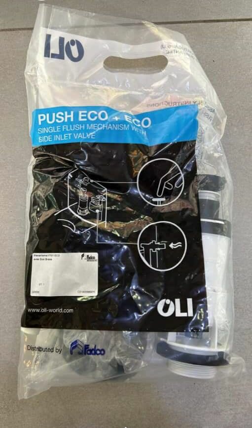 Économisez l'eau avec le mécanisme de chasse OLI Push Eco. Installation facile, compatibilité universelle. Idéal pour moderniser vos toilettes avec efficacité.