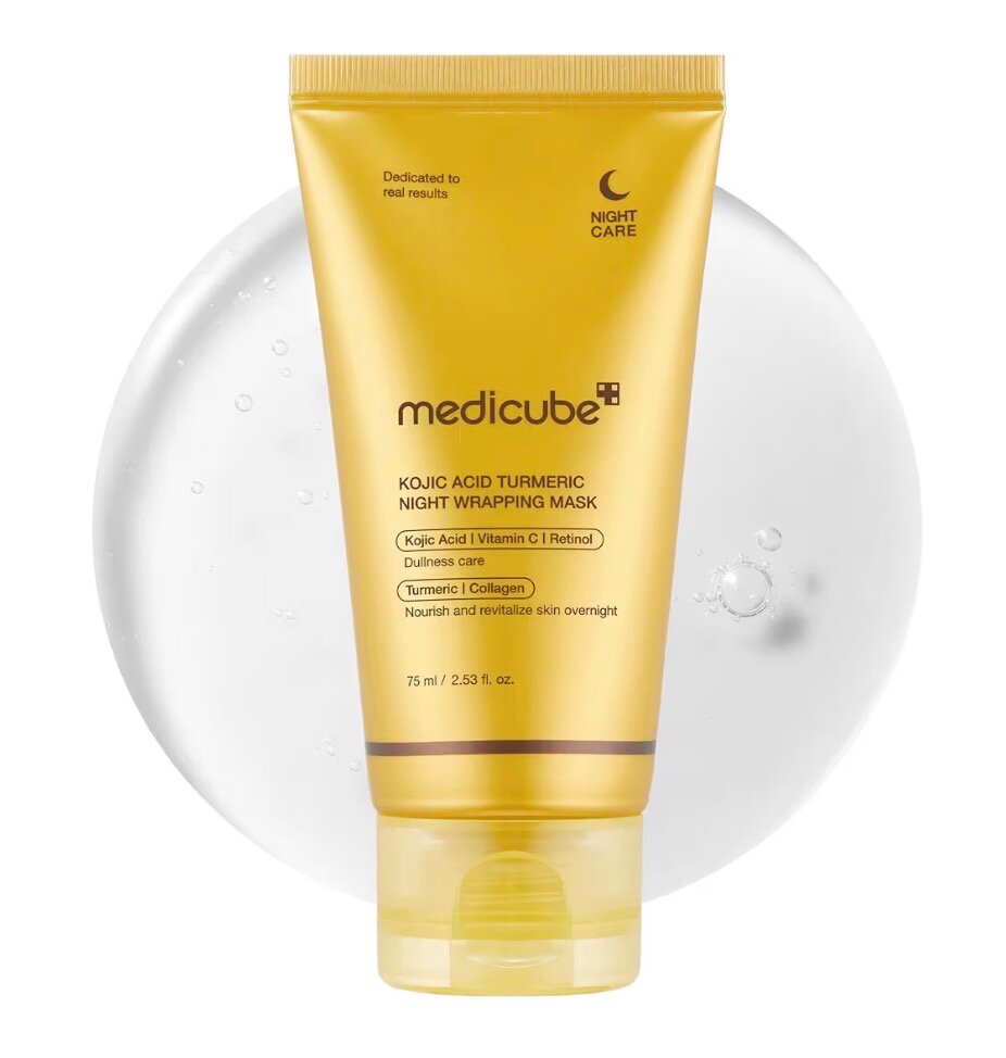 Revitalize your skin overnight with Medicube's Kojic Acid Turmeric Night Wrapping Mask. Infused with Kojic Acid, Vitamin C, and Retinol, it brightens and nourishes while you sleep. Ideal for dull and tired skin, this mask promotes a glowing complexion with added turmeric and collagen benefits. Perfect for all skin types seeking rejuvenation and hydration.