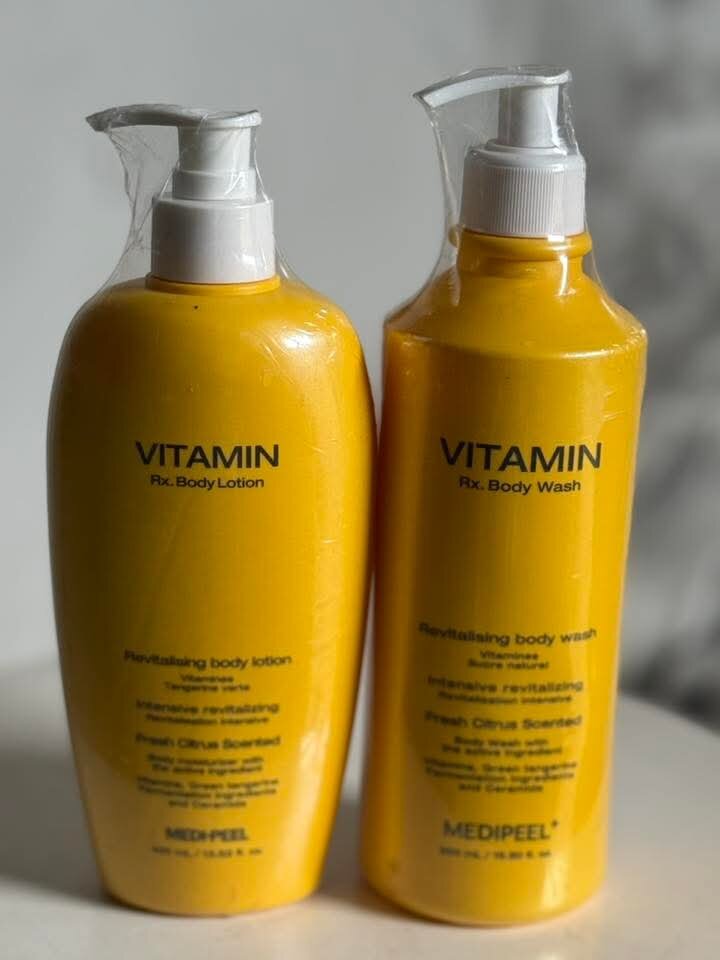 Découvrez le combo revitalisant Medipeel Vitamin : lotion et gel douche. Parfumé aux agrumes frais, il dynamise votre peau. Idéal pour une utilisation quotidienne.
