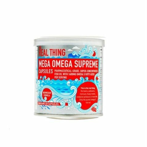 The Real Thing Mega Omega Supreme Capsules provide a potent dose of high-quality omega-3 fatty acids, sourced from sustainably harvested fish oil. Each capsule delivers EPA (Eicosapentaenoic Acid) and DHA (Docosahexaenoic Acid), essential for heart health, brain function, joint support, and overall well-being. This advanced formula is carefully purified to remove heavy metals and toxins, ensuring premium quality and safety.