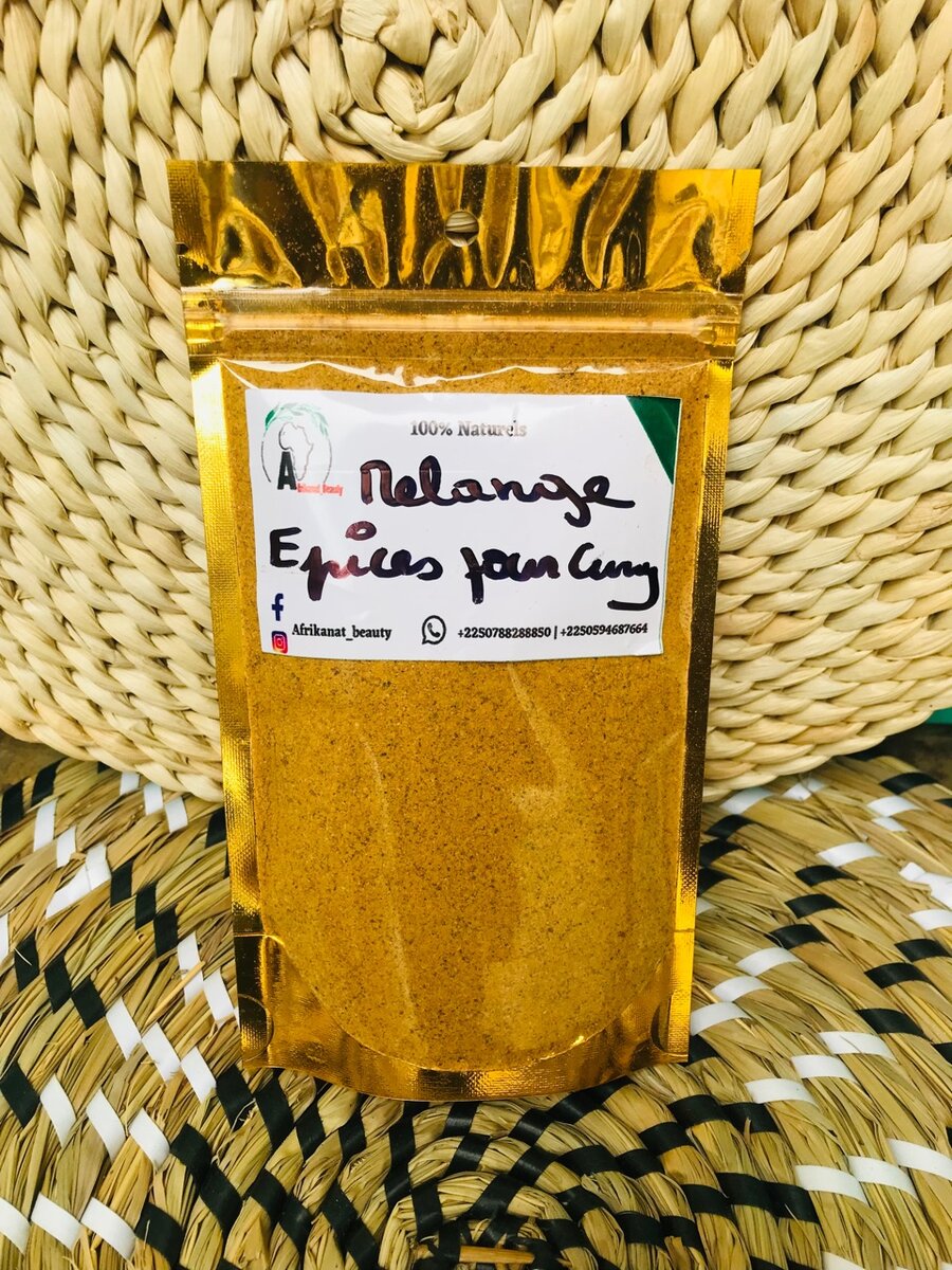 Mélange épices au curry : Coriandre Cumin Poivre Ail Oignons Cuisses de citron Gingembre