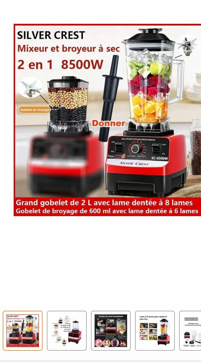Découvrez le puissant mélangeur 2 en 1 Silver Crest, idéal pour broyer et mixer vos ingrédients préférés. Capacité de 2L et 600ml, lames dentées pour un broyage efficace. Parfait pour smoothies, café, céréales et plus. Votre allié en cuisine !