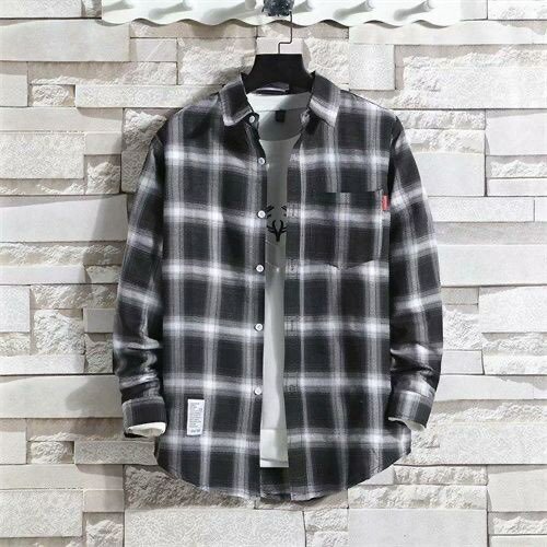 Men's Longss Sleeve Plaid Shirt-Black