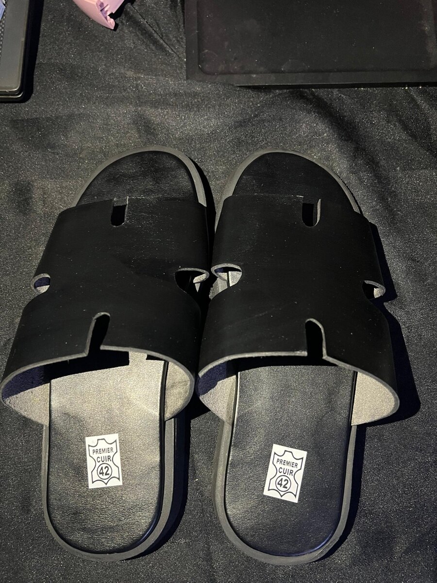 Discover ultimate comfort with these men's casual black slides. Perfect for lounging or quick errands, these slides feature a sleek design and durable material. The slip-on style ensures ease of use, while the cushioned footbed provides all-day comfort. Ideal for summer wear, poolside relaxation, or casual outings.