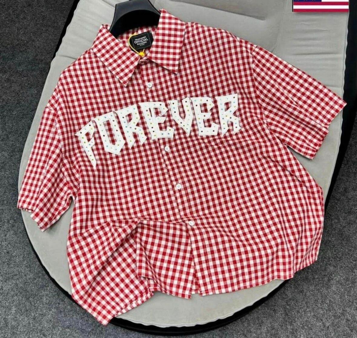Elevate your style with this stylish gingham shirt featuring a classic collar and 'FOREVER' print. Made for comfort and versatility.