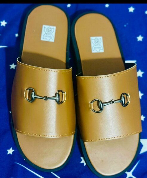 Step into style with these men's leather slide sandals. Featuring a sleek design with metallic accents, these sandals are perfect for casual outings or lounging. The durable sole ensures long-lasting comfort. Ideal for warm weather adventures.