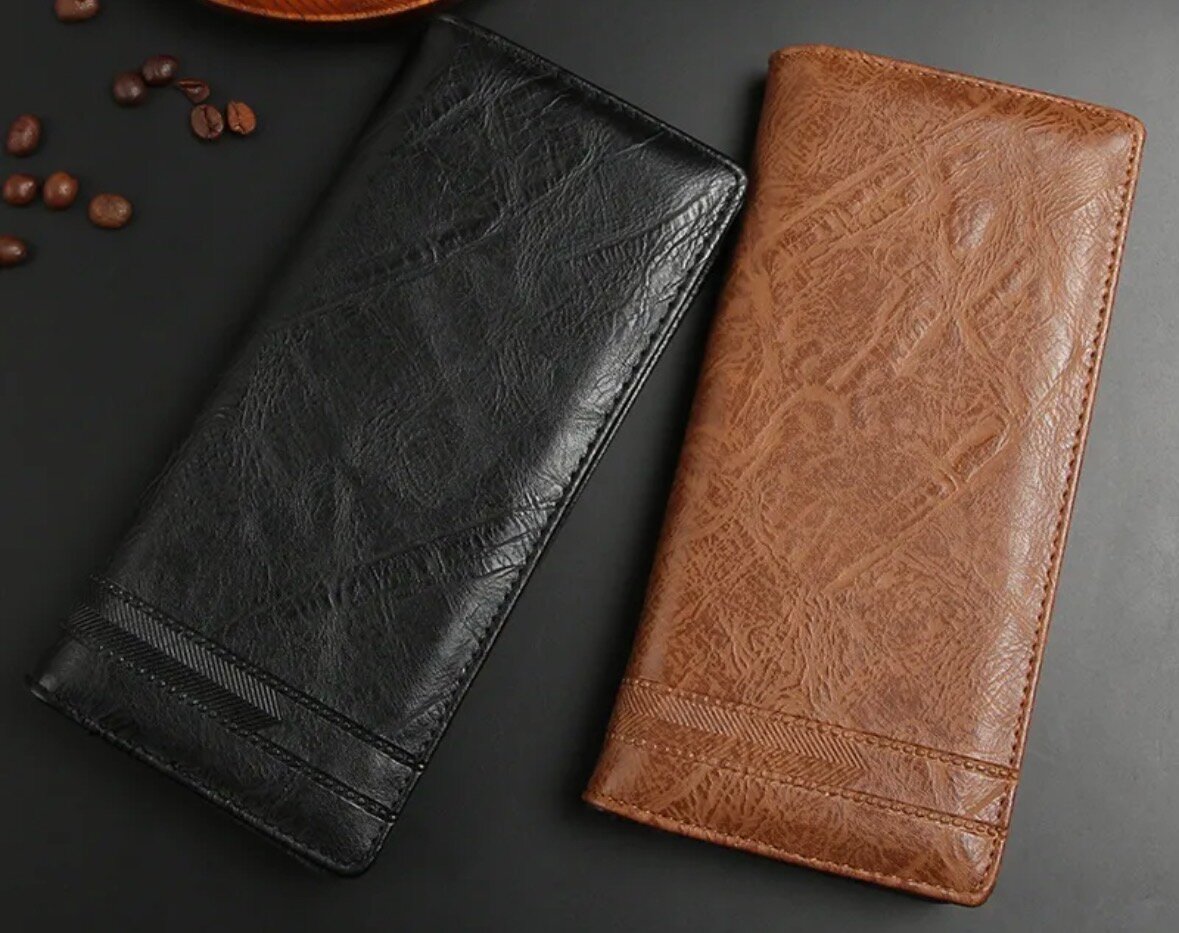 Stylish and durable men's leather wallet in brown and black. Crafted with high-quality leather, it's perfect for organizing cash, cards, and more. Ideal for everyday use or special occasions, providing elegance and practicality.