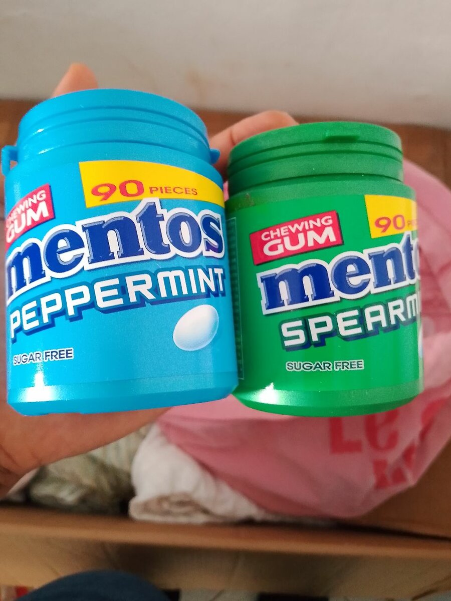 Profitez de la fraîcheur intense du chewing-gum Mentos disponible en saveurs menthe poivrée et menthe verte. Parfait pour une haleine fraîche à tout moment!