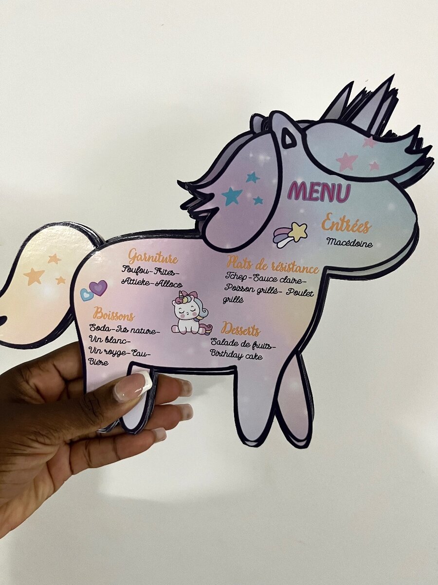 Découvrez nos menus en formes originales, parfaits pour événements spéciaux. Chaque menu est une œuvre d'art, façonné pour captiver et impressionner vos invités. Idéal pour mariages, baptêmes et anniversaires, ces créations ajoutent une touche élégante et personnalisée à votre table. Choisissez une présentation qui parle à votre thème et enchante vos convives.