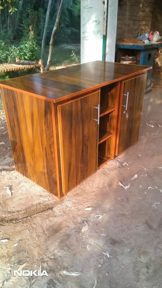 Meuble de cuisine en bois massif brut équipé de portes et d'une étagère. Idéal pour ranger vos ustensiles de cuisine.