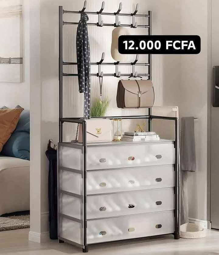 Ce meuble d'entrée multifonctionnel est idéal pour organiser vos vêtements et accessoires. Doté de crochets pour vêtements et d'étagères pratiques, il optimise l'espace avec style. Parfait pour un hall d'entrée moderne. Investissez dans l'organisation !
