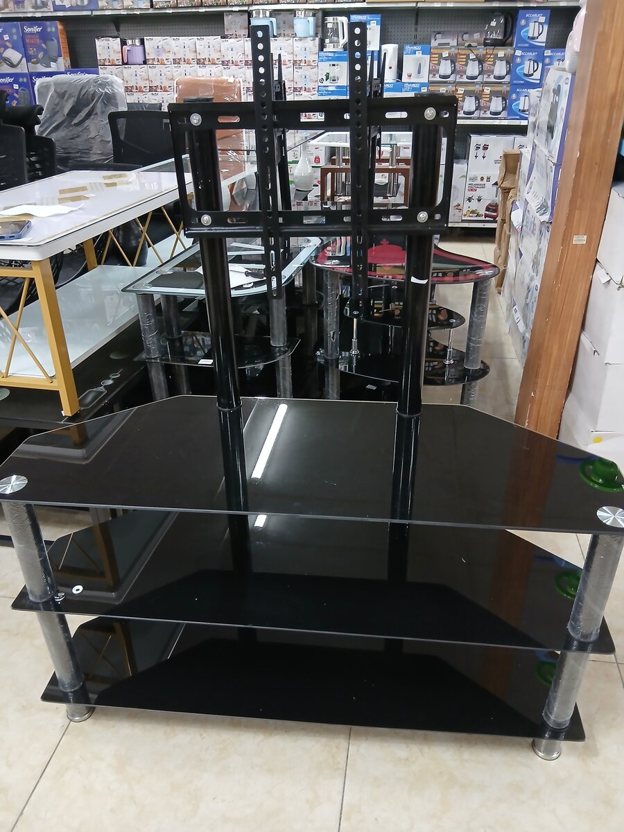 Optimisez votre espace de divertissement avec ce meuble TV en verre élégant. Design moderne et épuré pour s'adapter à tout intérieur. Idéal pour les écrans plats, ce meuble offre également des étagères spacieuses pour vos accessoires. Parfait pour salon ou salle de divertissement.