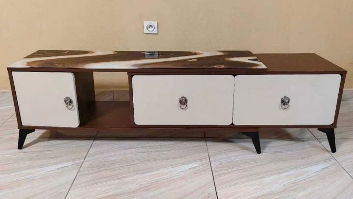 Ce meuble TV en bois offre une allure moderne et sophistiquée, parfaite pour rehausser votre salon. Avec ses espaces de rangement spacieux et des portes élégantes, il combine style et fonctionnalité. Idéal pour organiser vos appareils multimédias dans une atmosphère chic.