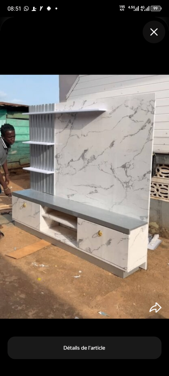 Ajoutez une touche d'élégance à votre salon avec ce meuble TV moderne en imitation marbre. Ce meuble offre une grande capacité de rangement grâce à ses étagères et tiroirs spacieux. Parfait pour organiser votre espace média tout en ajoutant une note chic à votre décoration intérieure. Idéal pour les amateurs de design contemporain.