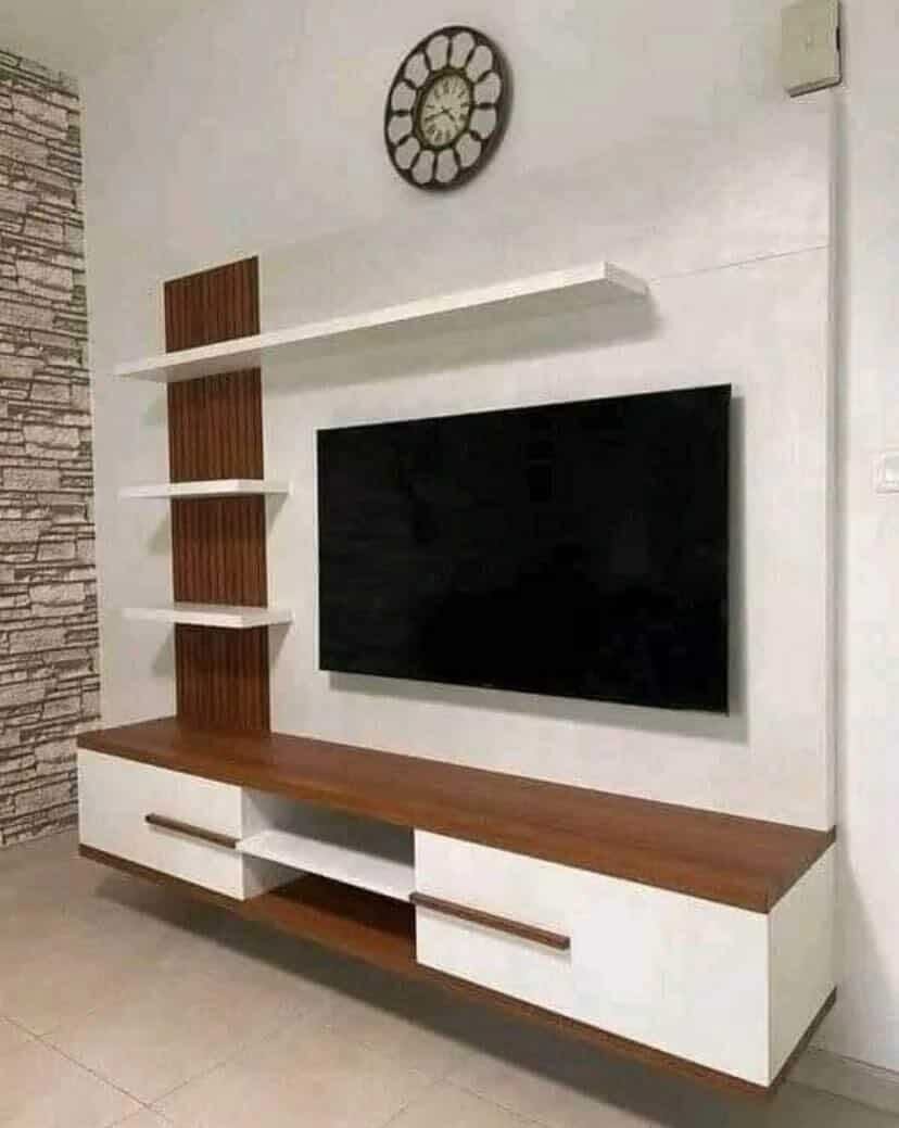 Transformez votre salon avec ce meuble TV moderne. Ses finitions en bois et blanc apportent élégance et fonctionnalité. Parfait pour organiser votre espace avec des étagères pratiques pour vos appareils et décorations. Idéal pour un intérieur contemporain.