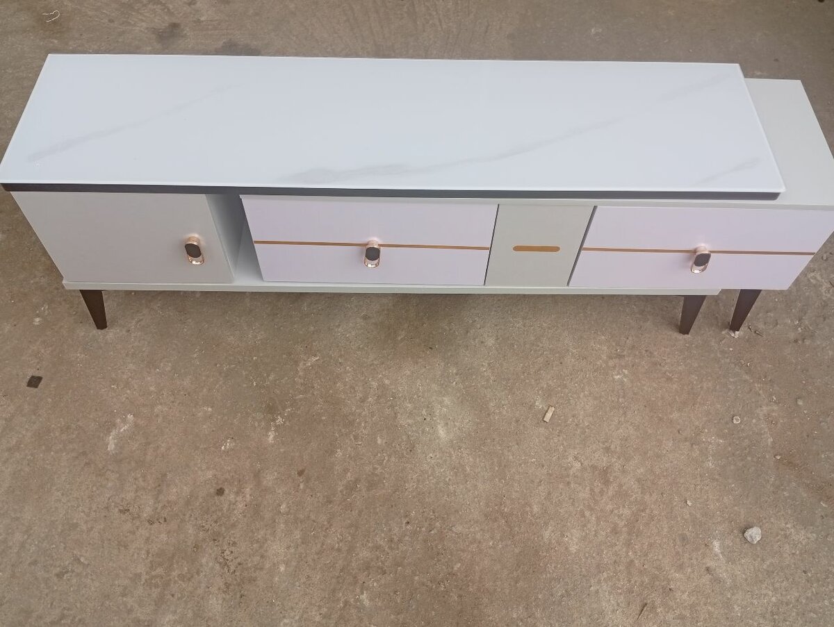 Ajoutez une touche d'élégance à votre salon avec ce meuble TV contemporain. Conçu avec des matériaux de haute qualité, il offre un espace de rangement pratique avec ses tiroirs et compartiments ouverts. Sa finition en bois et ses pieds robustes garantissent stabilité et durabilité. Idéal pour ranger vos appareils électroniques et accessoires de salon. Une solution parfaite pour un intérieur moderne et élégant.