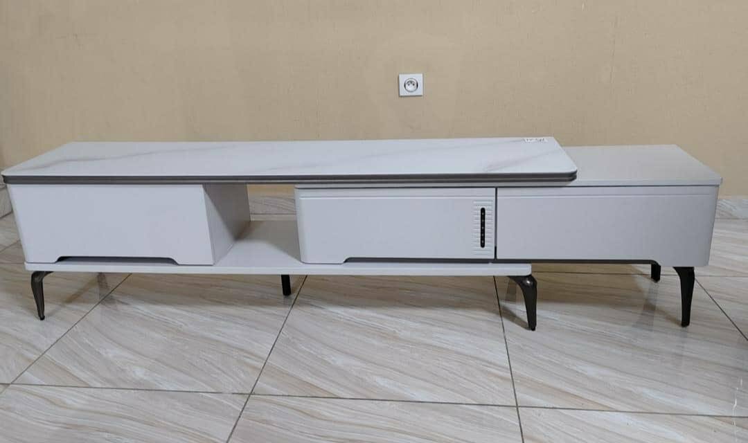 Ajoutez une touche d'élégance à votre salon avec ce meuble TV moderne gris. Idéal pour organiser vos appareils multimédia, ce meuble allie style et fonctionnalité. Ses lignes épurées et ses pieds robustes s'intègrent facilement dans tout type d'intérieur. Parfait pour un salon contemporain.