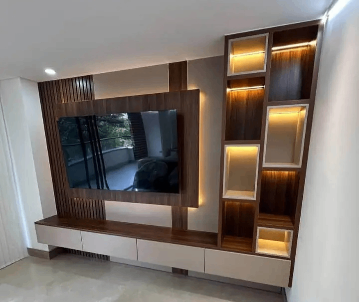 Transformez votre salon avec ce meuble TV mural moderne aux lignes épurées et éclairage LED intégré. Conçu pour organiser vos appareils multimédia tout en ajoutant une touche d'élégance contemporaine. Ses multiples étagères offrent de l'espace pour exposer vos objets décoratifs. Idéal pour les amateurs de design moderne cherchant à optimiser leur espace de vie.