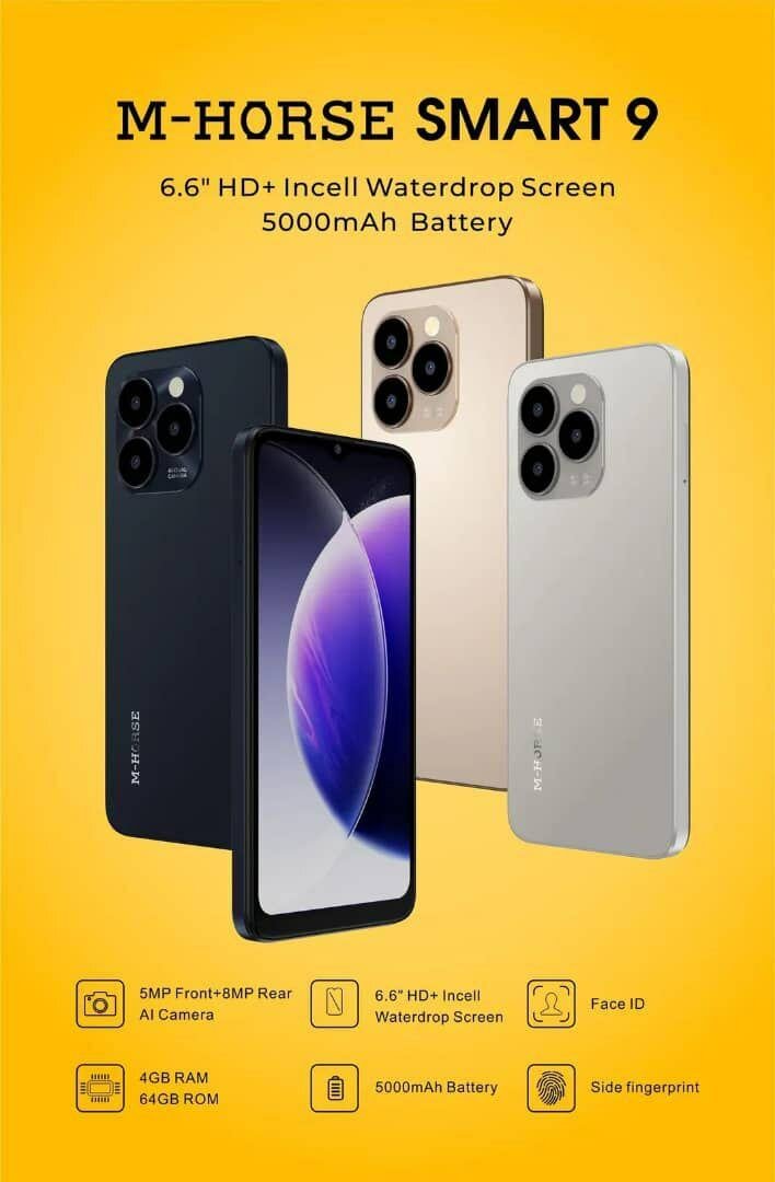 Découvrez le M-Horse Smart 9 avec écran HD+ de 6,6" et batterie 5000mAh. Profitez de la double caméra, Face ID et stockage extensible. Idéal pour un usage quotidien.