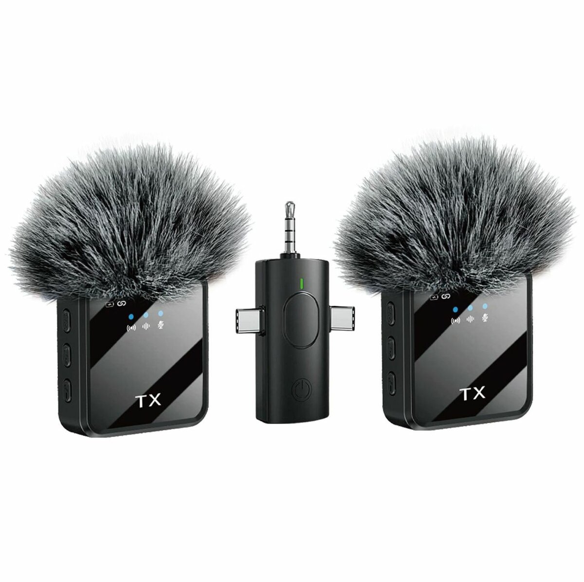 Microphone Lavalier Sans Fil F11-2 pour iPhone/Android & Type C avec 99% Réduction de Bruit