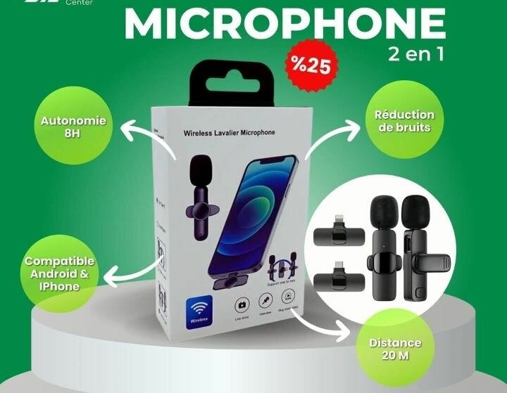 Découvrez notre microphone cravate sans fil, idéal pour Android et iPhone. Profitez de 8h d'autonomie, réduction de bruit efficace et portée de 20m. Compact et facile à transporter, parfait pour vlogs et interviews. Capturez un son clair partout où vous allez !