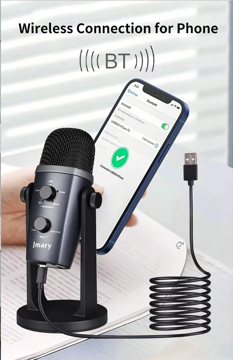 Découvrez le microphone sans fil cardioïde Jmary pour une capture vocale claire et précise. Connectivité Bluetooth pour une utilisation facile avec votre téléphone portable. Idéal pour l'enregistrement à domicile, le podcasting ou les vidéoconférences. Contrôle du volume intuitif et design élégant. Choix parfait pour les créateurs de contenu exigeants.