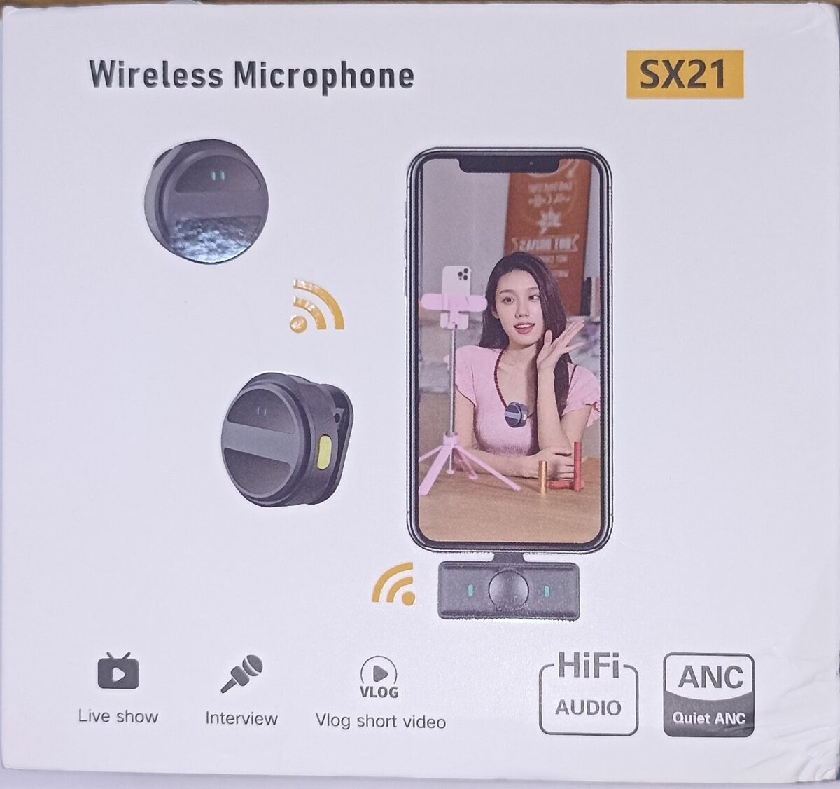 Découvrez le Microphone sans fil SX21, idéal pour les vlogs, interviews et émissions en direct. Profitez d'un son HiFi avec ANC pour une expérience audio claire et sans bruit. Compact et facile à utiliser, c'est l'accessoire parfait pour améliorer vos vidéos.