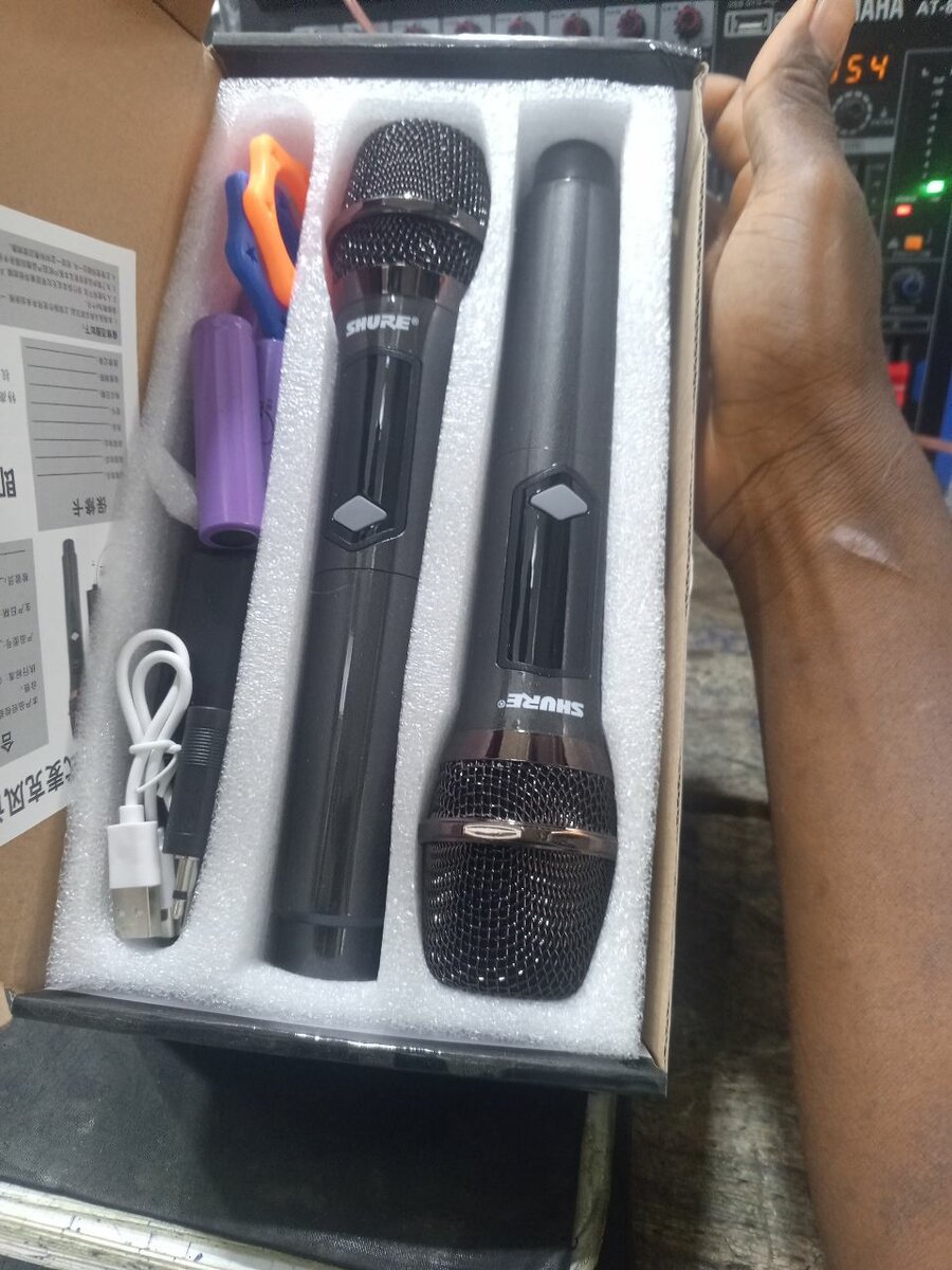Ensemble de microphones sans fil, idéal pour les événements, karaoké et présentations. Portée étendue, design ergonomique et connexion stable pour une performance optimale. Comprend câbles et accessoires complets pour une installation facile. Parfait pour les amateurs de musique et les professionnels.