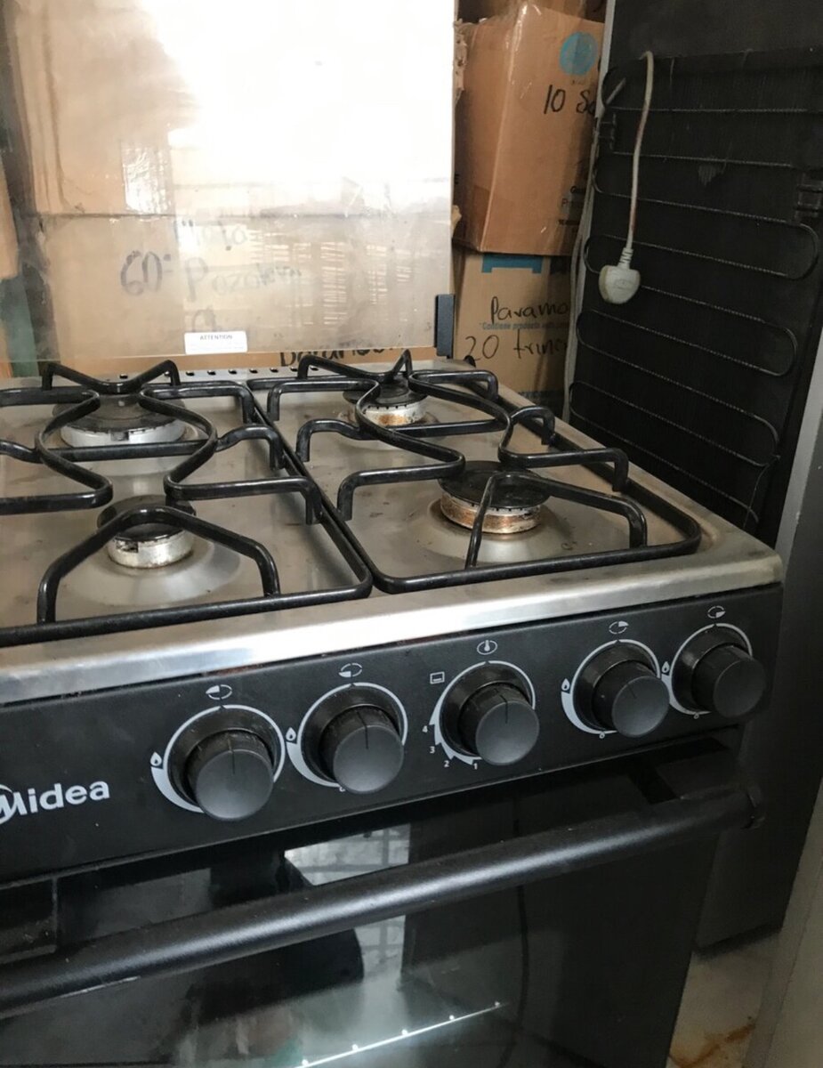 Slightly used 50*50 Midea 4 burner Oven Gas stove comes with tube and regulator
