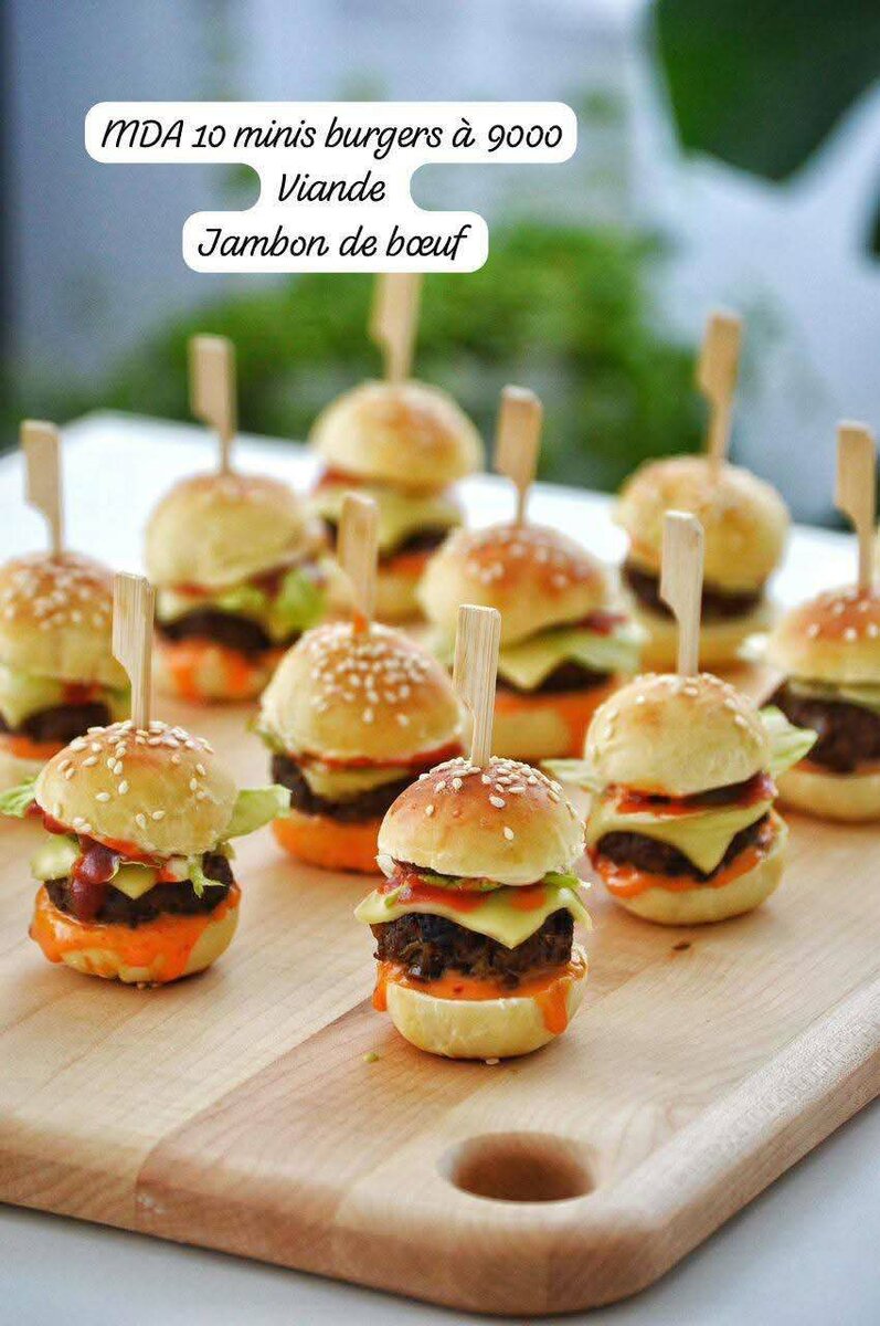 Dégustez ces mini burgers savoureux au bœuf. Idéals pour les fêtes, apéros ou événements.