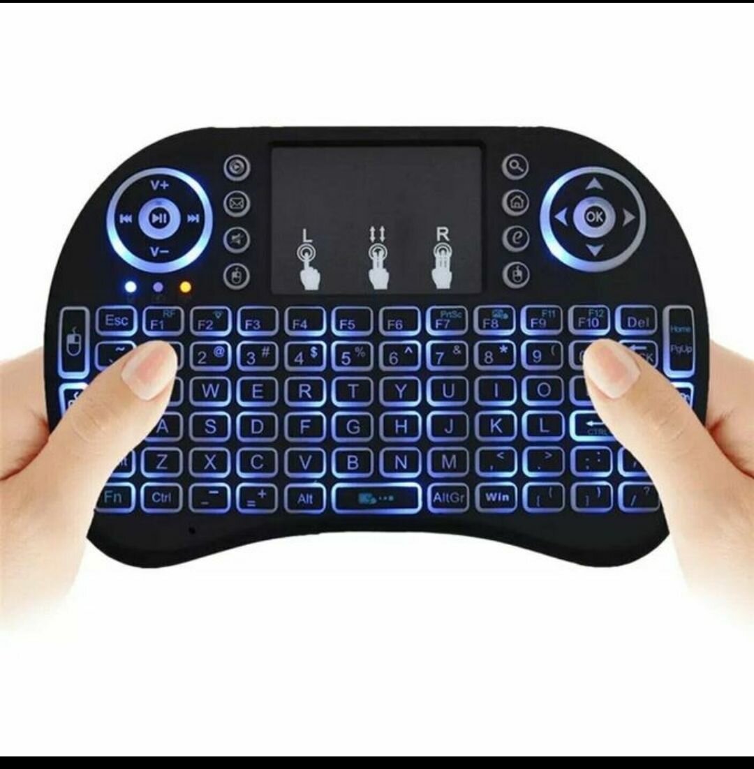 Complete keyboard with mouse controller Comes with backlit Rechargeable Compatible with Smartphones, PC, Android TV, etc