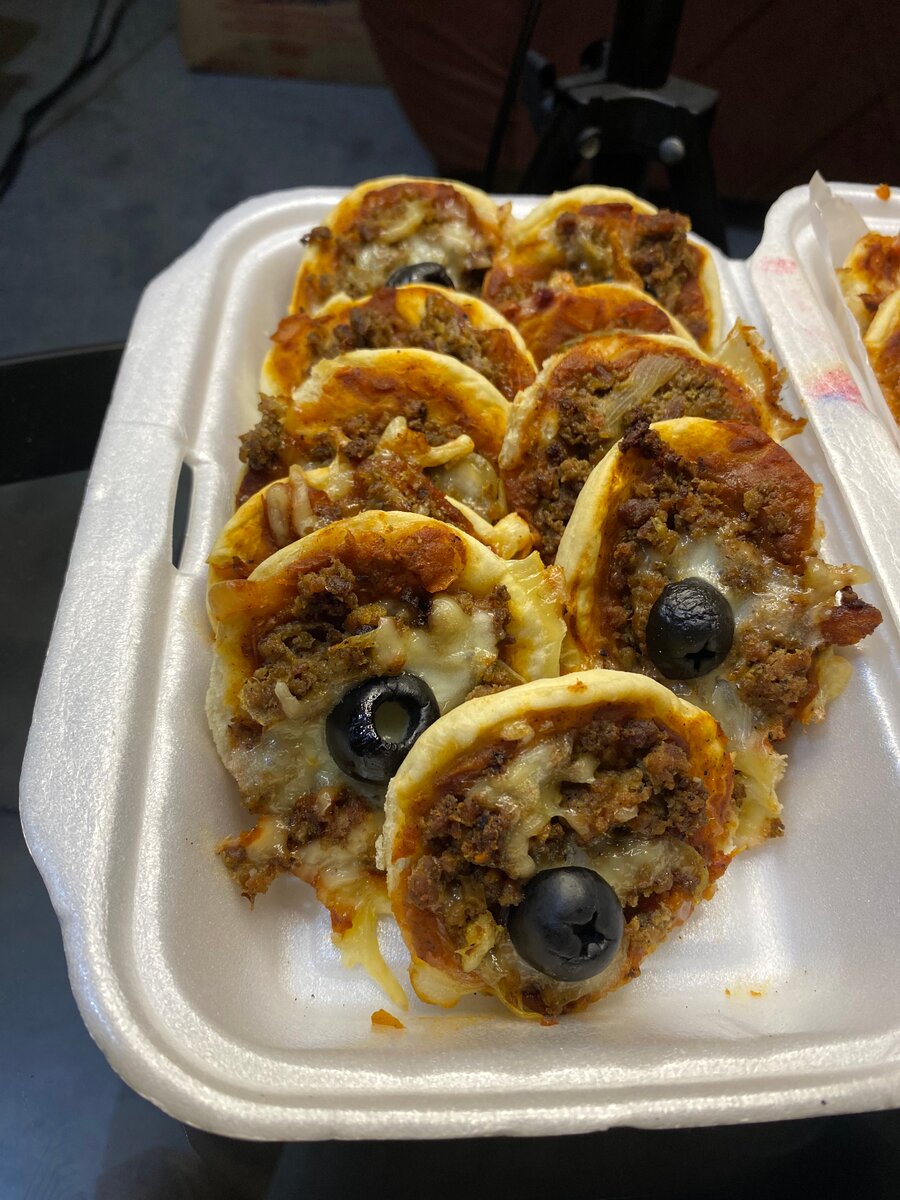 Découvrez nos mini pizzas artisanales garnies de viande savoureuse et d'olives juteuses. Parfaites pour les apéros, fêtes ou repas rapides. Cuite à la perfection, chaque bouchée promet une explosion de saveurs délicieuses!